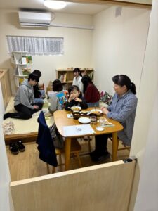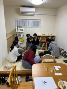お子さんたちが揃うと、学生さんたちも含め狭いキッズスペースも満杯になりましたが、前回は遊びの輪に入れなかったお子さんも加わる等、とても楽しそうな満員でした。